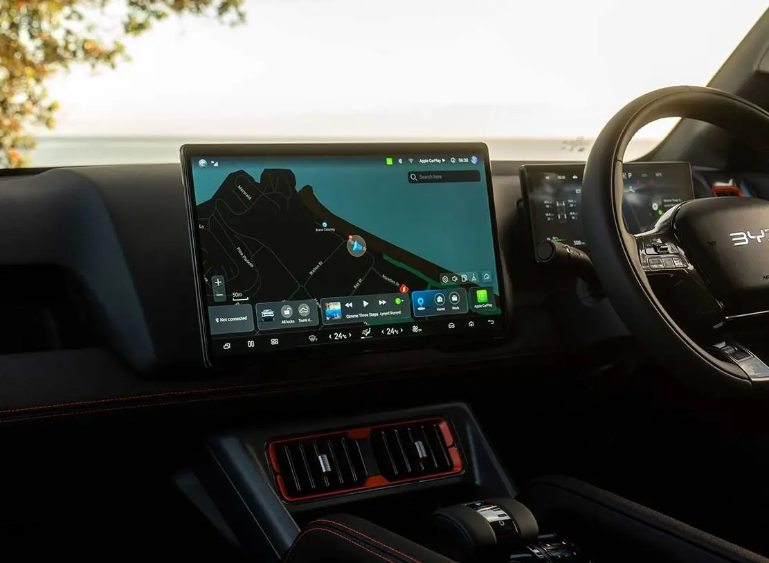 The 15.6″ rotating touchscreen, 10.25″ digital cluster, OTA updates, 360° camera, voice assistant, and V2L power outlet keep you connected and in control wherever you go.